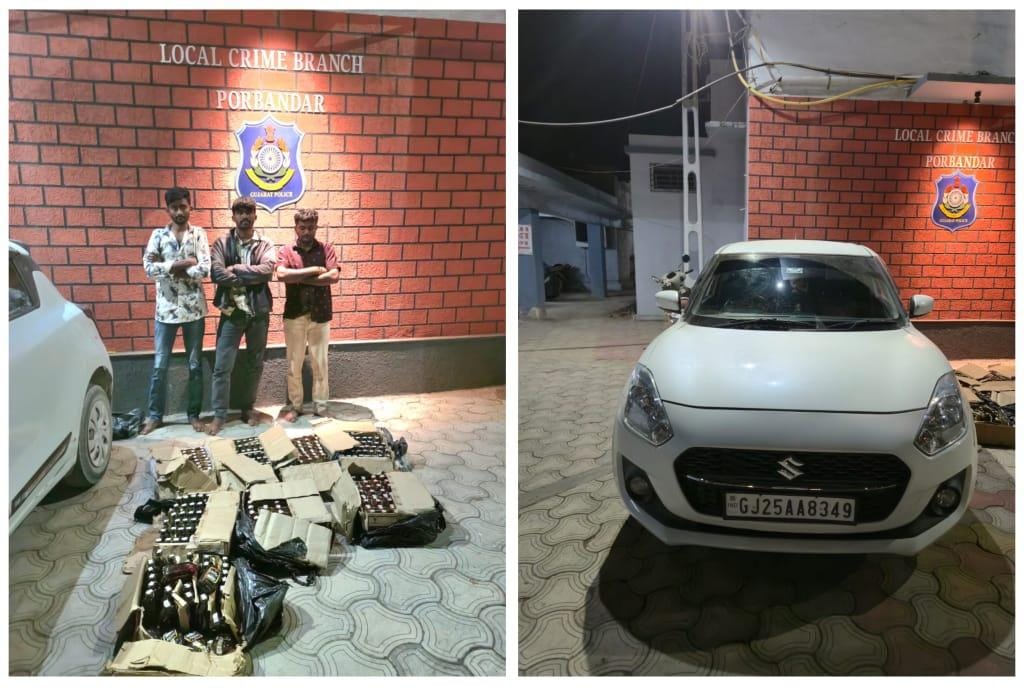 જુનાગઢ રેન્જના પોલીસ મહાનિરીક્ષક નિલેશ જાજડીયા તથા પોરબંદર પોલીસ અધિક્ષક ભગીરથસિંહ જાડેજા નાઓ દ્વારા વખતો વખત પોરબંદર જીલ્લામાં થી ભારતીય બનાવટના વિદેશી દારૂની પ્રવૃત્તિ નેસ્ત નાબુદ કરવા આપેલ સુચના અનુસંધાને એલ.સી.બી. ઈન્ચાર્જ પો.ઇન્સ. આર.કે.કાંબરીયા ના માર્ગદર્શન હેઠળ એલ.સી.બી. સ્ટાફના પેટ્રોલીંગમાં હતા દરમ્યાન એ . એસ.આઈ બટુકભાઇ વિંઝુડા તથા હેડ કોન્સ્ટેબલ હીમાંશુભાઇ મક્કા તથા પોલીસ કોન્ટસેબલ નટવરભાઇ ઓડેદરાને ખાનગી રાહે બાતમી મળી હતી કે આદિત્યાણા તરફથી એક સફેદ સ્વીફ્ટ કારમાં ભારતીય બનાવટના વિદેશી દારૂની બોટલોનો જથ્થો લાવવામાં આવી રહ્યો છે. બાતમીના આધારે કાદા વિસ્તાર ખાતે ટાટાના એરીયાની ઓફિસ પાસે વાહન અટકાવી તપાસ કરતાં કારમાં ત્રણ ઇસમો બેઠેલા મળી આવ્યા હતા.