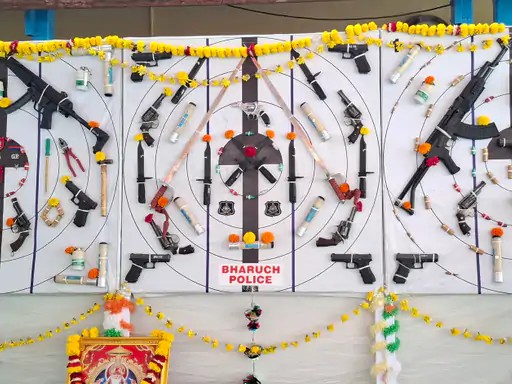 વિજયા દશમી એટલે કે દશેરાના પવિત્ર પર્વ નિમિત્તે ભરૂચ જિલ્લા પોલીસ વિભાગ દ્વારા આજે પોલીસ હેડક્વાર્ટર ખાતે પરંપરાગત શસ્ત્ર પૂજન વિધિનું આયોજન કરવામાં આવ્યું હતું.