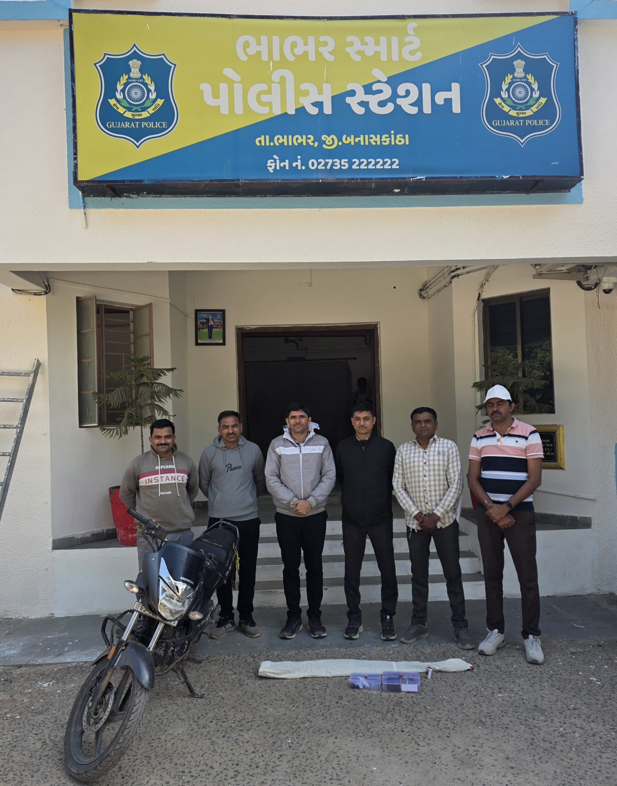 પેરોલ ફર્લો સ્કોડ સ્ટાફના માણસો ભાભર પોલીસ સ્ટેશન વિસ્તારમાં પેટ્રોલીંગમાં હતા તે દરમિયાન ખાનગી રાહે બાતમી મળેલ. વન્ય પ્રાણી-પાંચ નીલ ગાયનો શીકાર કરી મૃત્યુ નિપજાવનાર આરોપીઓ જુમા રમજાન સિંધી અને વલી સુમાર સિંધી બંને હાલ રહે.રાણીસર તા.સાંતલપુર જિ.પાટણ ભાભર પોલીસ સ્ટેશન વિસ્તારના વડપગ ગામની સીમમાં વન્ય પ્રાણીઓનો શિકાર કરવા માટે હથિયાર સાથે આવેલ બાતમી હકિકત આધારે પેટ્રોલીંગમાં હતા તે દરમિયાન વડપગ ગામની સીમમાં બેડાથી ધ્રાડવા જતા પાકા રોડ ઉપર આવતા અચાનક પુર ઝડપે મોટર સાયકલ આવેલ અને પોલીસને દુરથી જોઈ મોટર સાયકલ રોડ ઉપર ફંગોળી મોટર સાયકલ ચાલક તથા તેની પાછળ બેઠેલ ઈસમ રણમાં બાવળોની ઝાડીમાં નાસી ગયેલ અને મોટર સાયકલ અને ગેરકાયદેસર અને વગર પાસપરમીટની દેશી ડાથ બનાવટની બંદુક અને તેમા ભરી વિસ્ફોટ કરવાનો ઘન પદાર્થ તથા ધાતુના છરા આઠ અને ધાતુ લગાવેલ ટીકડીઓ અઢાર પકડી પાડેલ અને દિયોદર પોલીસ સ્ટેશનના ધ્રાડવ ગામે પાંચ નીલગાયનો શિકાર કરી મૃત્ય નિપજાવેલનો દિયોદર રેન્જ ફોરેસ્ટ વિભાગમાં દાખલ થયેલ ગુનો શોધી કાઢી બંને ઈસમો વિરૂધ્ધ ભાભર પોલીસ સ્ટેશન ખાતે આર્મએકટ હેઠળ કાયદેસરની કાર્યવાહી કરવામાં આવેલ.