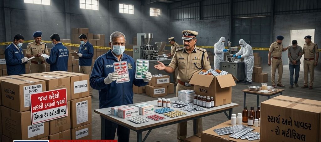 ગુપ્ત બાતમીના આધારે પાડવામાં આવેલા દરોડામાં જાણીતી બ્રાન્ડના નામે વેચાતી એન્ટિબાયોટિક્સ અને જીવનરક્ષક દવાઓનો નકલી સ્ટોક મળી આવ્યો છે. આ દવાઓ દેખાવમાં અસલી જેવી જ લાગે છે, પણ તેની અંદર રહેલું મટીરિયલ શુદ્ધ ઝેર સમાન છે.