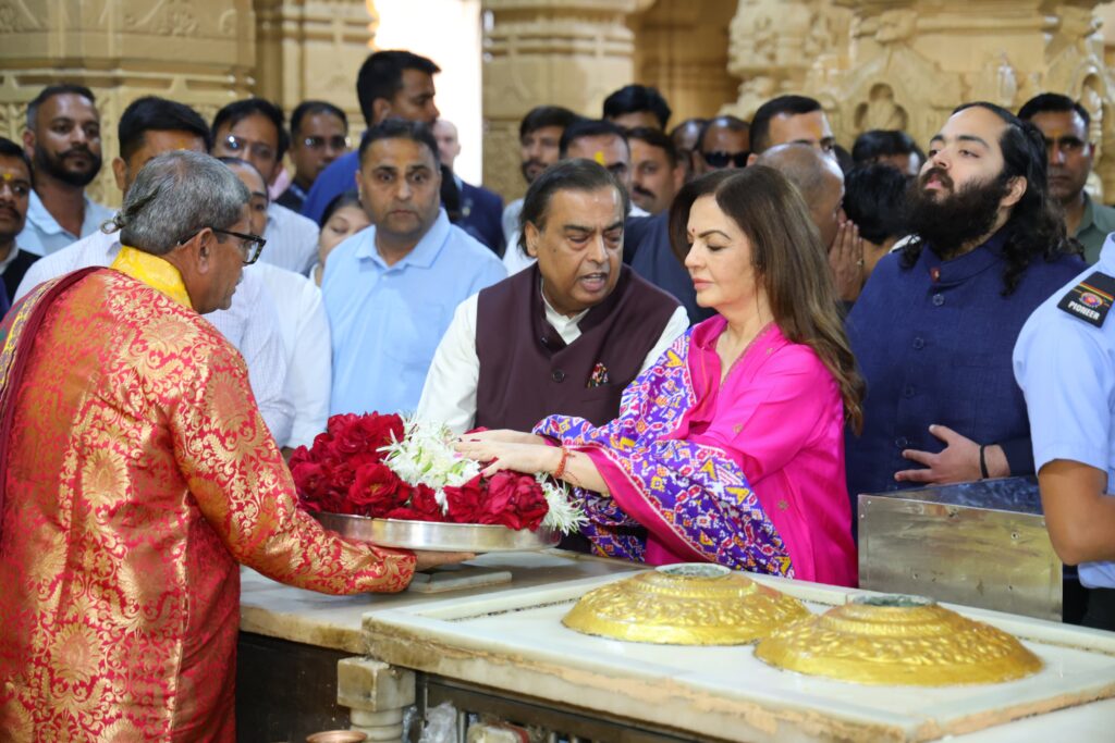 નૂતન વર્ષના મંગલમય પ્રારંભે સોમનાથ મંદિરમાં અંબાણી પરિવારે મહાદેવને ગંગાજલ અભિષેક કરી, પૂજા સામગ્રી અર્પણ કરી હતી. આ પુનિત અવસરે તેઓએ વેદોક્ત મંત્રોચ્ચાર સાથે સોમનાથ દાદાની કુલસોમેશ્વર મહા પૂજા કરી હતી. આ ઉપરાંત, ‘ધ્વજા પૂજા’ અને ભક્તોમાં જેનું વિશેષ મહત્વ છે તેવી ‘પાઘ પૂજા’ કરીને રાષ્ટ્રની સુખ, શાંતિ અને સમૃદ્ધિ માટે પ્રાર્થના કરી હતી.