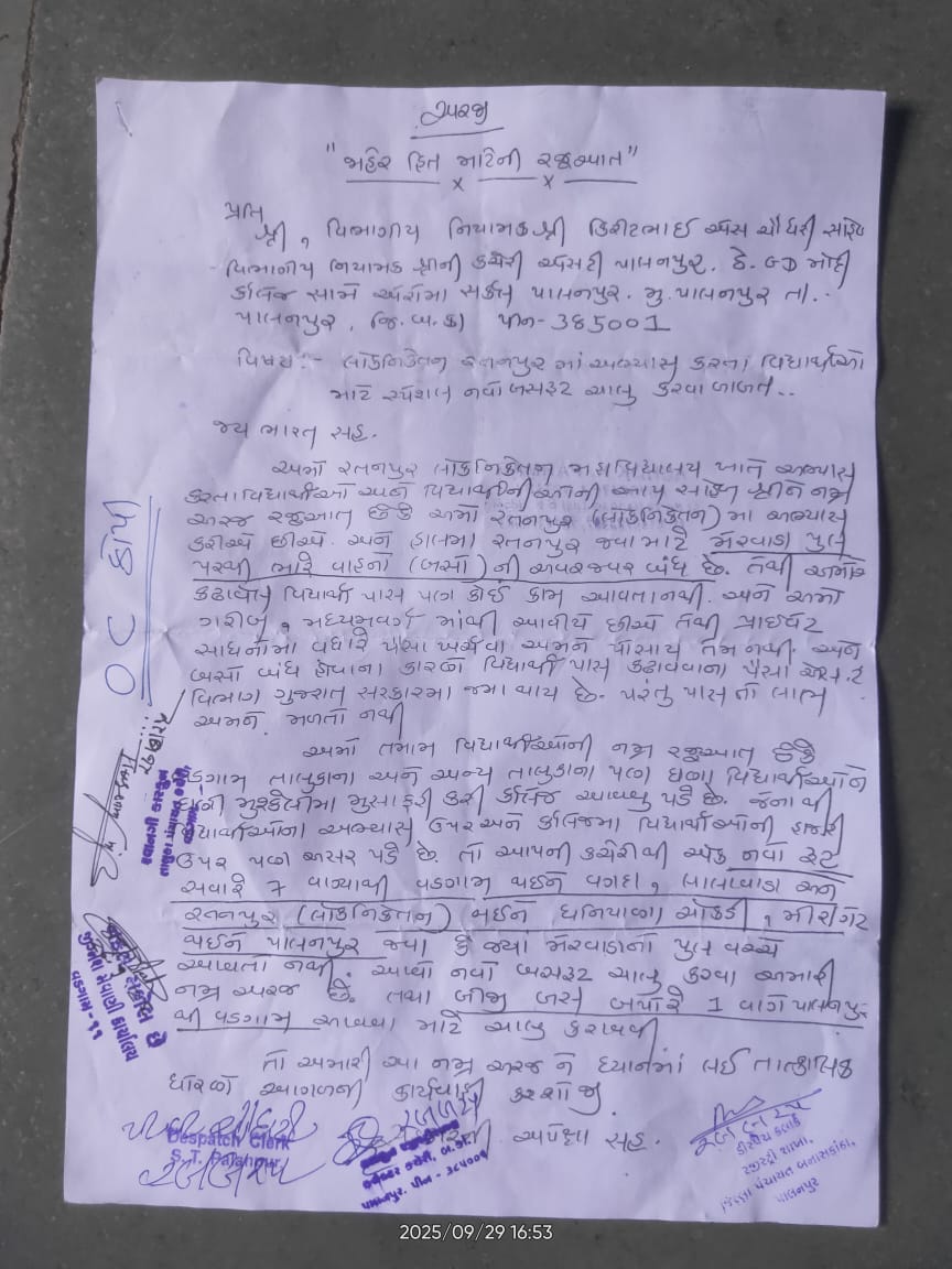 જેના લીધે વડગામ તાલુકાથી મેરવાડા, રતનપુર પરથી પસાર થઇ રહેલી એસ.ટી બસ સેવાઓ બંધ કરવામાં આવેલ છે.પણ વડગામથી લોકનિકેતન બી.એડ કોલેજ તનપુરમાં અભ્યાસ કરવા જતા વિધાર્થીઓને અન્ય કોઈ બસ સેવાનો લાભ મળતો નથી અને વિધાર્થીને અવરજવર કરવામાં ખૂબ જ તકલીફો પડી રહી છે. તેથી વડગામ થી લોકનિકેતન બી.એડ કોલેજ રતનપુર વિધાર્થીઓ માટે સવારે- 7 કલાકે વડગામથી રતનપુર અને બપોરે-1 કલાકે અનપુરથી વડગામ મીની બસ સેવા ચાલુ કરાવવા વડગામ ગામના લોકોએ પાલનપુર એસ.ટી નિગમ સહિત ઉચ્ચ કક્ષાએ લેખિત રજૂઆત કરી હતી. જેને લઇ તાત્કાલિક એસ.ટી વિભાગ દ્વારા મીની બસો ચાલુ કરવામાં આવે તેવું લોકોએ જણાવ્યું હતું.