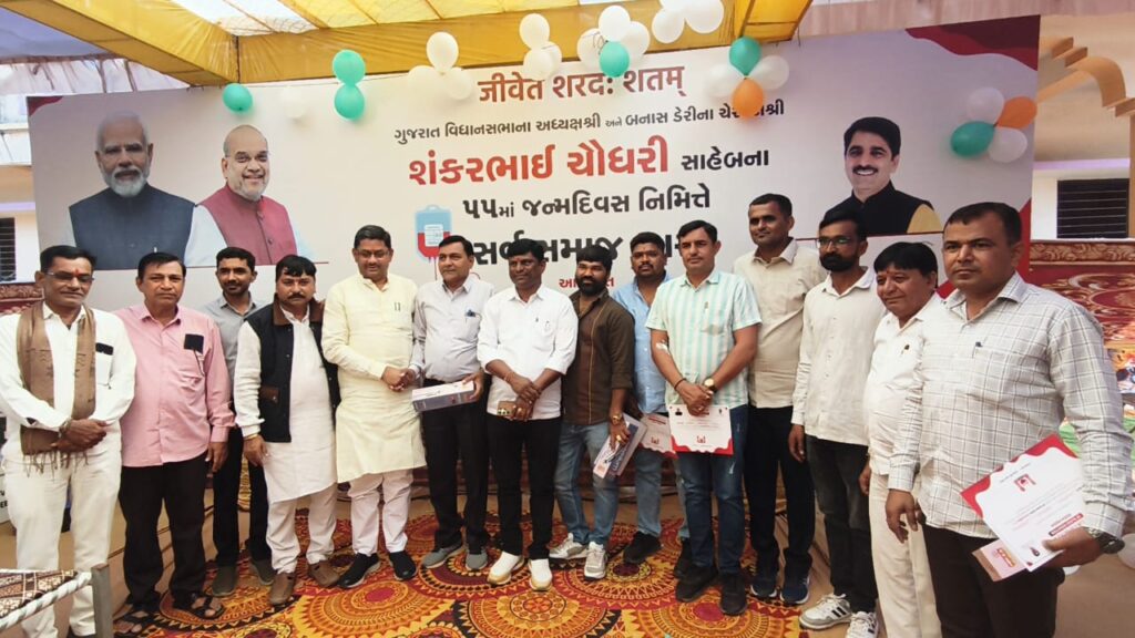 ગુજરાત વિધાનસભાના અધ્યક્ષ બનાસ ડેરીના ચેરમેન શંકરભાઈ ચૌધરીના ૫૫માં જન્મ દિન નિમિતે દિયોદર તાલુકાના મીની અંબાજી સણાદર મંદિર ખાતે સર્વ સમાજ દ્વારા આયોજિત રક્તદાન શિબિરનું આયોજન કરાયું હતું જેમાં સર્વ સમાજના આગેવાનોની હાજરીમાં તેમજ મોમાઈ મોરા મહંત શુભમગીરી બાપુ ,નાના કાપરા મહંત કુરશીગિરી બાપુ, સણાદર મહંત અંકુશગીરી બાપુ,દ્વારા દીપ પ્રાગટ્ય કરી રક્તદાન શિબિર ખુલ્લી મૂકવામાં આવેલ આ રક્તદાન શિબિર કેમ્પમાં સર્વ સમાજના યુવાનોએ અધ્યક્ષ શંકરભાઈ ચૌધરી ના જન્મ દિવસને યાદગાર બનાવવા માટે રક્તદાન એ મહાદાન ના ભાગરૂપે લોકોએ રક્તદાન કરી એક સંદેશો આપ્યો હતો આ રક્તદાન શિબિરમાં સેવાભાવી શિક્ષક જામાભાઈ પટેલે 78મી વખત રક્તદાન કરી યુવાનોને રક્તદાન કરવા આહવાન કર્યું હતું જેમાં આ રક્તદાન શિબિર માં ૧૧૫૮ બોટલ રક્ત એકઠું થયું હતું જે રક્ત વિવિધ જરૂરિયાત લોકોને મદદ રૂપ થઈ શકે તે માટે મોકલવામાં આવેલ જેમાં આ રક્તદાન કેમ્પમાં ૧૨૦ લોકોએ અંગદાન કરવાની જાહેરાત કરી એક સેવાનું ઉતમ ઉદાહરણ પૂરું પાડ્યું હતું આ રક્તદાન શિબિરમાં ૨૪૮ લોકોનું મેડિકલ ચેકઅપ કરાયું હતું આ પ્રસંગે જિલ્લા ભાજપ પ્રમુખ કીર્તિસિહ વાઘેલા ,બનાસ બેંક ચેરમેન ડાયાભાઈ પીલીયાતર,કનુભાઈ વ્યાસ , પૂર્વ ધારાસભ્ય અનિલભાઈ માળી,રૈયા જિલ્લા પંચાયત સદસ્ય રમેશભાઈ ચૌધરી,બનાસ ડેરીના ડિરેક્ટર રમીલાબેન ચૌધરી,તા પૂર્વ પ્રમુખ ઉત્તમસિંહ વાઘેલા , ડૉ હસુભાઈ પટેલ,ભરતભાઈ ઠાકોર (વકીલ) વગેરે આગેવાનો હાજર રહ્યા હતા અને કાર્યક્રમ ને સફળ બનાવ્યો હતો