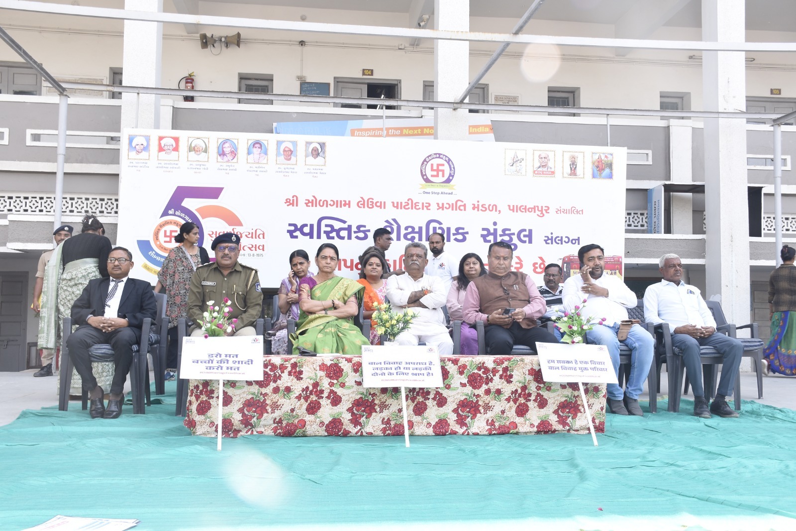 ગુજરાત રાજ્ય બાળ અધિકાર સંરક્ષણ આયોગ ગાંધીનગર, બનાસકાંઠા જિલ્લા વહીવટી તંત્ર તથા પ્રયાસ સંસ્થાના સહયોગથી પાલનપુર તાલુકાના સ્વસ્તિક શૈક્ષણિક સંકુલ ખાતે “બાળ લગ્ન મુક્ત ભારત” અભિયાન અંતર્ગત વિશેષ જાગૃતિ કાર્યક્રમ યોજાયો હતો. આ કાર્યક્રમ ગુજરાત રાજ્ય બાળ સંરક્ષણ આયોગના ચેરપર્સન શ્રીમતી ધર્મિષ્ઠાબેન ગજ્જરના અધ્યક્ષસ્થાને યોજાયો હતો.
