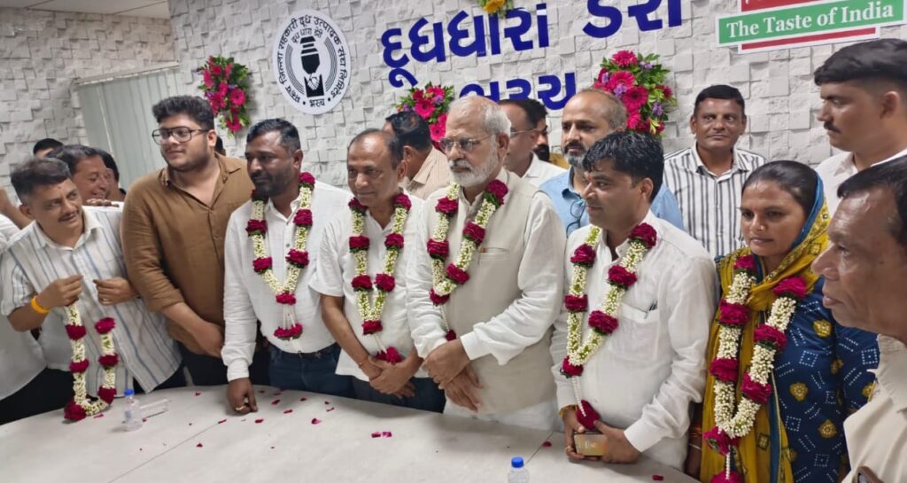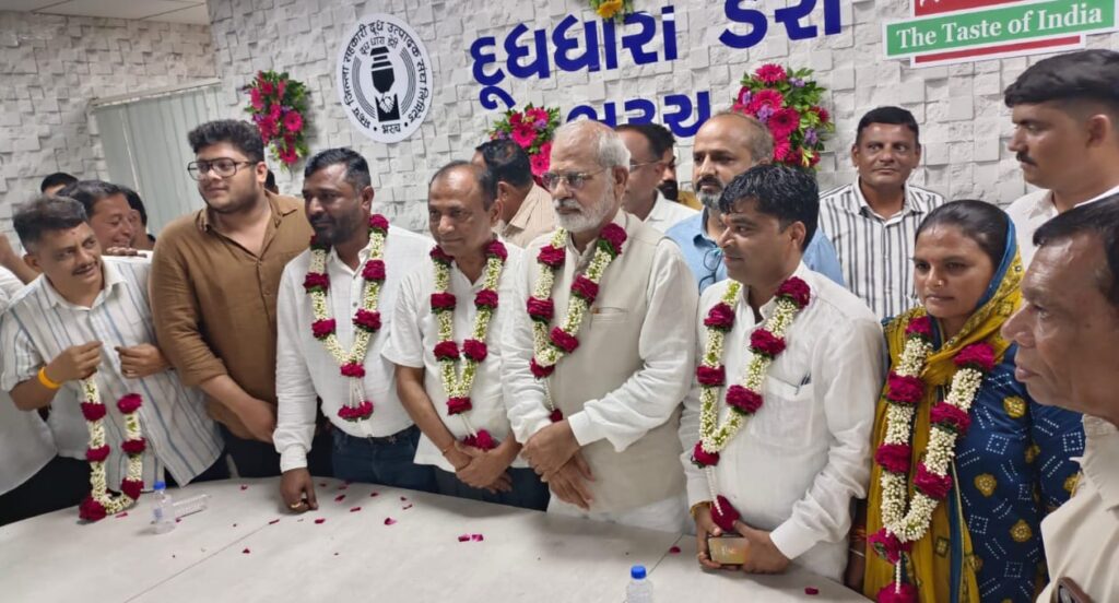આજે સર્વાનુમતે ઘનશ્યામ પટેલની સતત પાંચમીવાર નિમણૂક કરવામાં આવી હતી. જયારે વાઈઝ ચેરમેન તરીકે સંજયસિંહ રાજ અને શ્રીમતી નર્મદાબેન રમેશભાઈ વસાવાની બીનહરીફ વરણી કરવામાં આવી હતી.આજે મોટી સંખ્યામાં સભાસદો, કાર્યકરો ઉપસ્થિત રહી તેમને અભિનંદન, શુભેચ્છા પાઠવી હતી.