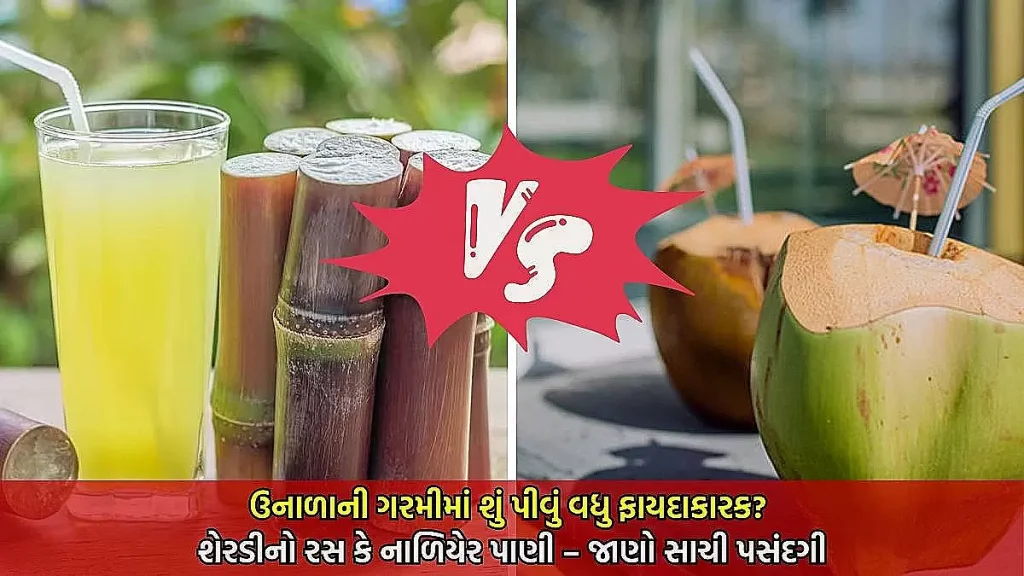 ઉનાળાની શરૂઆત થતા જ બજારમાં ઠંડા પીણાંની માંગ વધી જાય છે. જ્યારે શરીરને હાઇડ્રેટ રાખવા માટે કાકડી, ટામેટા, શેરડીનો રસ અને નાળિયેર પાણી જેવી વસ્તુ ખાવી-પીવી જોઈએ. હાઇડ્રેશન જાળવી રાખવા માટે શેરડીનો રસ અને નાળિયેર પાણી બંને પીવામાં આવે છે. પરંતુ સવાલ એ છે કે, બંનેમાં શ્રેષ્ઠ કોણ છે?