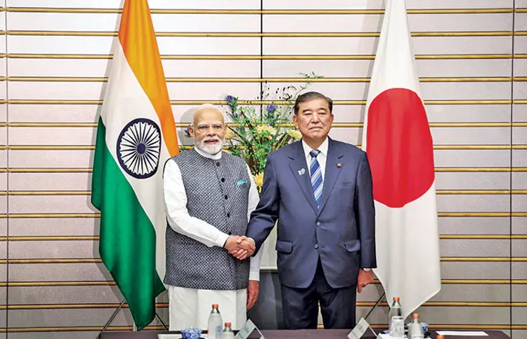 વડાપ્રધાન નરેન્દ્ર મોદી સાત વર્ષ પછી શુક્રવારે જાપાનના પ્રવાસે ટોકિયો પહોંચ્યા હતા. પીએમ મોદી અને જાપાનના વડાપ્રધાન શિગેરુ ઈશિબા વચ્ચે શુક્રવારે ૧૫મી શિખર મંત્રણા થઈ હતી. આ બેઠકનો આશય ભારત અને જાપાન વચ્ચે વેપાર, રોકાણ અને ઊભરતી ટેક્નોલોજીના ક્ષેત્રો સહિત દ્વિપક્ષીય સંબંધોને વધુ ગાઢ બનાવવાનો હતો.