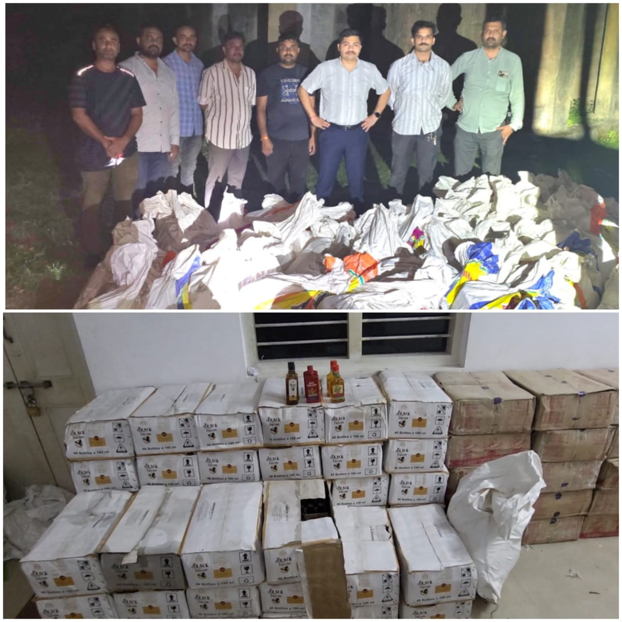 તેવી હકીકત મળતા તુરંતજ હકીકત વાળી જગ્યાએ જઈને રેઈડ કરતા મજકુર રામા મુરૂભાઇ ચાવડા હાજર હોય જે પોલીસ સ્ટાફને જોઈ ને સીમશાળાની દીવાલ કૂદીને બાવળની કાટમાં અંધારામાં નાચી ગયેલ અને મજકુર એ સીમશાળામાં પાછળ આવેલ બાથરૂમમાં છુપાવેલ ભારતીય બનાવટનો વિદેશી દારૂના અલગ અલગ બ્રાન્ડના કંપની શીલ પેક કાચના તથા પ્લાસ્ટિકના ચપટા (નાની બોટલો) ભરેલ પુઠ્ઠા ના બોક્ષ-૮૦ ચપટા (નાની બોટલા) નંગ ૩૮૪૯ કિ. રૂ. ૬,૮૨,૮૦૦ નો મુદ્દામાલ મળી આવતા નાચી જનાર આરોપી રામા મુરૂભાઇ ચાવડા વિરૂધ્ધ રાણાવાવ પોલીસ સ્ટેશનમાં પ્રોહીબિશન નો ગુન્હો રજીસ્ટર કરાવી પ્રસંશનીય કામગીરી કરેલ છે.