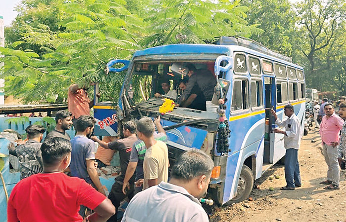 સંતરામપુરના બાયપાસ રોડ ઉપર નવી વસાહત નજીક વાકાનાળા-નરસીંગપુર પાસે દીવાલ તોડી બે વ્યક્તિને અડફેટે લેતા બંનેના મોત નિપજ્યા હતા.આ અકસ્માતમાં મિની લક્ઝરી બસમાં મુસાફરી કરી રહેલા મુસાફરો પૈકી ૧૧ મુસાફરોને ઇજા થતાં તેમને સંતરામપુર સરકારી હોસ્પિટલમાં સારવાર માટે ખસેડયા હતા.ઇજાગ્રસ્તો પૈકી બે વ્યક્તિ શારદાબેન ગોવિંદભાઈ રાવળ અને પ્રભાત ભાઈ ચતુરભાઈ પટેલીયા બંને (રહે.આગરવાડા તા. મોરવાહડફ) ને વધુ સારવાર માટે સિવીલ હોસ્પિટલમાં ખસેડયા હતા. મિની લક્ઝરી બસનો ચાલક કીરીટભાઇ ભુરાભાઈ પટૈવ (રહે. કસનપુર)ને પણ ઇજા થતાં તેને પણ સંતરામપુર સરકારી હોસ્પિટલમાં સારવાર માટે દાખલ કર્યો હતો. અકસ્માતમાં નવી વસાહત નરસીગપુરના કમલેશ પંચાલ અને રાજેશભાઈ ઉર્ફે રાજુ મંગીલાલ વીસપડા રહે નરસીગપુરને મીની લક્ઝરી બસના ચાલકે અડફેટમાં લેતા તેમના ઘટના સ્થળે મોત નિપજ્યા હતા.