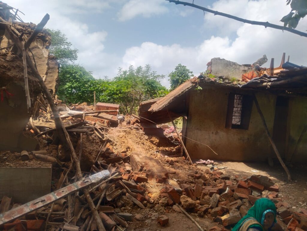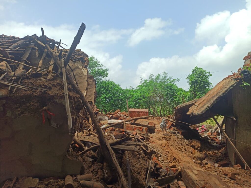 મધ્યરાત્રી ઘર માં પરિવાર ઊંઘતો હતો અને મકાન ધરાસાઈ થયું