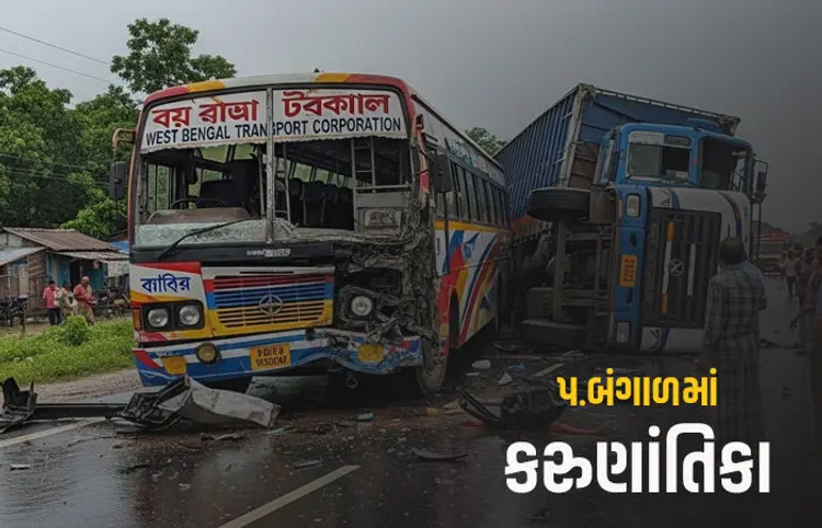 પશ્ચિમ બંગાળના બર્ધમાન જિલ્લામાં એક ભયાવહ માર્ગ અકસ્માતમાં 10 લોકોના મોત થયા છે, જ્યારે 30 યાત્રાળુઓને ગંભીર ઈજા પહોંચી છે. એક ખાનગી બસ ફુલસ્પીડે આવતી બસ રસ્તાની સાઈડલાઈન પર ઉભેલી ટ્રક પાછળ ધડાકાભેર અથડાઈ હતી. બસના આગળના ભાગનો બુકડો વળી ગયો હતો. બસમાં સવાર યાત્રાળુઓ તેમાં ફસાઈ ગયા હતા. આ બસ બિહારથી યાત્રાળુઓને લઈને આવી રહી હતી.