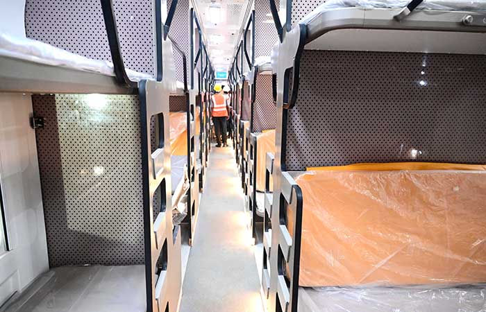 કોચનું ઇન્ટિરિયર ખૂબ જ આકર્ષક અને આધુનિક છે. જેમાં સારી લાઇટિંગ અને સુંદર ડિઝાઇન છે. બેડની વ્યવસ્થા રાજધાની એક્સપ્રેસ કરતાં પણ વધુ આરામદાયક બનાવવાનો પ્રયાસ કરાયો છે.