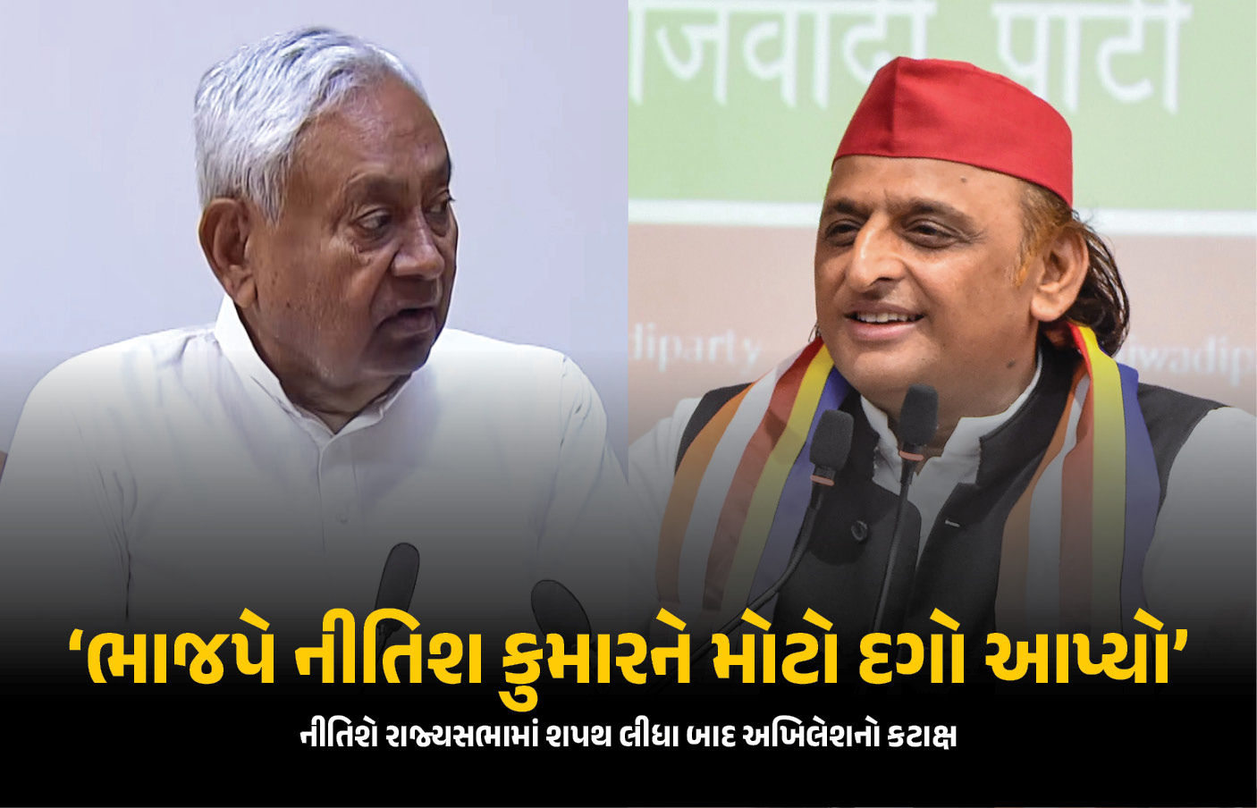 ઉત્તર પ્રદેશના પૂર્વ મુખ્યમંત્રી અને સમાજવાદી પાર્ટીના પ્રમુખ અખિલેશ યાદવે જયપુરની મુલાકાત દરમિયાન બિહારના મુખ્યમંત્રી નીતીશ કુમાર અને કેન્દ્રની ભાજપ સરકાર પર કટાક્ષ કર્યા છે. નીતીશ કુમારના રાજ્યસભામાં શપથ લેવા અંગે તેમણે ભાજપ પર દગો આપવાનો આરોપ લગાવ્યો હતો.