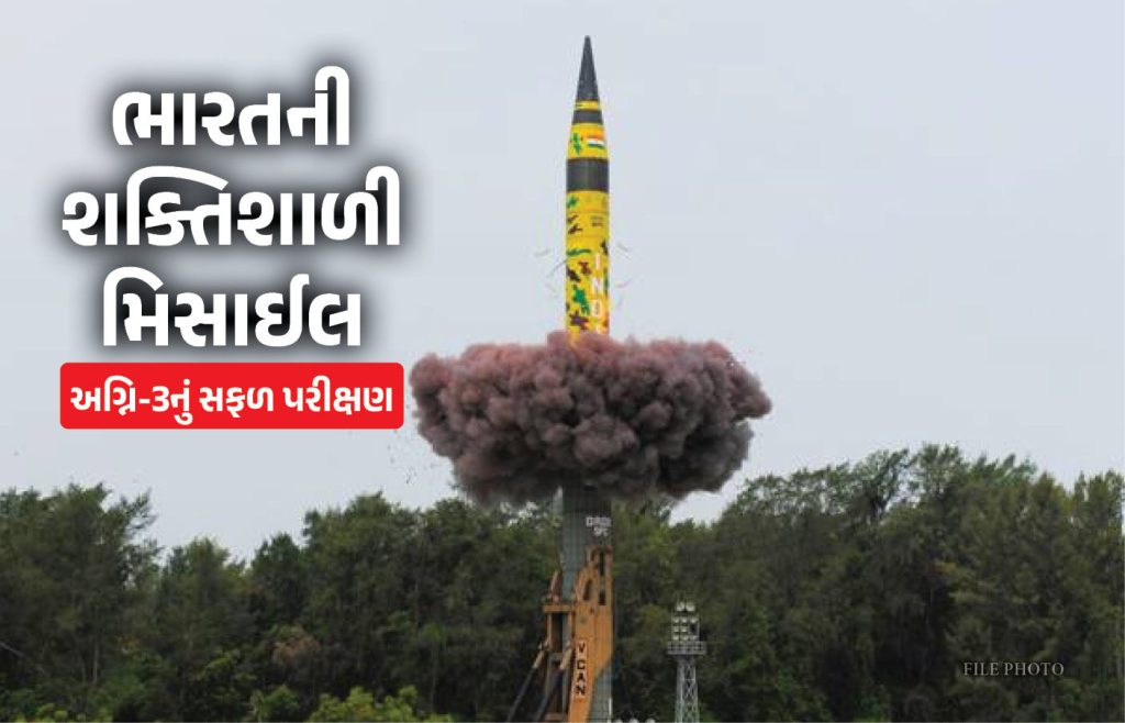 NATIONAL : ભારતે શક્તિશાળી મિસાઈલ અગ્નિ-3નું કર્યું સફળ પરીક્ષણ, સ્પીડ 1 સેકેન્ડમાં 5 કિમી, પરમાણુ બોમ્બ ઝીંકવાની ક્ષમતા