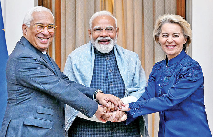 નિયમો આધારિત વૈશ્વિક વ્યવસ્થા માટેના તેમના વિઝનને અનુરૂપ દુનિયાના બે સૌથી મોટા લોકતાંત્રિક પક્ષો ભારત અને ૨૭ રાષ્ટ્રોના સંગઠન ઈયુએ આગામી પાંચ વર્ષ માટે સંયુક્ત વ્યાપક વ્યૂહાત્મક એજન્ડા રજૂ કર્યો છે અને એફટીએ માટેની વાટાઘાટો સહિત કુલ ૧૩ કરારને મજબૂત બનાવ્યા છે.