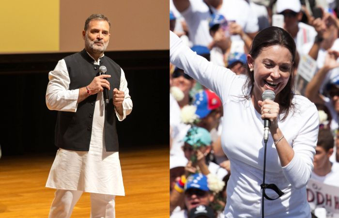 વેનેઝુએલાના વિપક્ષના નેતા મારિયા કોરિના મચાડોને આ વર્ષે શાંતિનો નોબેલ પુરસ્કાર મળ્યા બાદ કોંગ્રેસના પ્રવક્તા સુરેન્દ્ર રાજપૂતે તેમની તુલના કોંગ્રેસના નેતા અને લોકસભાના વિપક્ષી નેતા રાહુલ ગાંધી સાથે કરી હતી. રાજપૂતે સંકેત આપ્યા હતા કે જેમ મચાડોએ તેમના દેશમાં લોકશાહીના અધિકારો માટે સંઘર્ષ કરવા પર સન્માન મળ્યું હતું, તેવી જ રીતે રાહુલ ગાંધી પણ ભારતમાં બંધારણને બચાવવાની લડાઈ લડી રહ્યા છે.