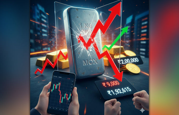 ચાંદીની કિંમતોમાં (Silver Price) ગયા સપ્તાહે ભારે ઉતાર-ચઢાવ જોવા મળ્યો છે. સપ્તાહના છેલ્લા કારોબારી દિવસે, શુક્રવારે, આ કીમતી ધાતુ મલ્ટી કોમોડિટી એક્સચેન્જ (MCX) પર ઐતિહાસિક સપાટીએ પહોંચીને પ્રથમ વખત ₹2 લાખ પ્રતિ કિલોગ્રામ નો આંકડો પાર કરી ગઈ હતી. જોકે, આ ઊંચાઈને સ્પર્શ્યા પછી ચાંદીના ભાવમાં અચાનક મોટો કડાકો બોલાઈ ગયો અને એક જ ઝટકામાં તે તેની સર્વોચ્ચ સપાટીથી ₹9,000 સસ્તી થઈ ગઈ હતી.