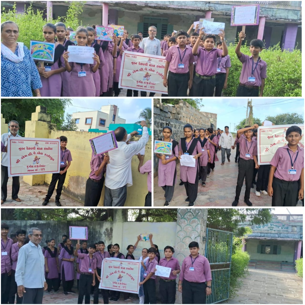 પોરબંદર- સોમનાથ નેશનલ હાઇવે રોડ પર આવેલ ગોસા (ઘેડ)ગામે બસ સ્ટેન્ડ અડીને આવેલ માતુશ્રી પૂરીબાઈ જીવનભાઈ લાખાણી હાઈસ્કૂલ ના પ્રિન્સિપલ સંતોકબેન આગઠ ના માર્ગદર્શન હેઠળ સ્વચ્છતા પખવાડિયા નિમિત્તે આજ રોજ ગોસા ગામમાં હાઈસ્કૂલ દ્વારા સ્વચ્છતાની રેલીનું આયોજન કરેલ અને ગામ લોકોને સ્વચ્છતા અંગે જાગૃત કરવામાં આવેલ.મહાત્મા ગાંધીજીની જન્મ જયંતી ૨જી ઓક્ટોબરને સમગ્ર દેશમાં સ્વચ્છતા દિવસ તરીકે ઉજવવામાં આવે છે, સ્વચ્છ ભારત મિશનના ૧૧ વર્ષની ઉજવણીના ભાગરૂપે સ્વચ્છતા હી સેવા ૨૦૨૫ને ‘સ્વચ્છોત્સવ’ તરીકે ઉજવવાનું નક્કી કરવામાં આવ્યું છે.