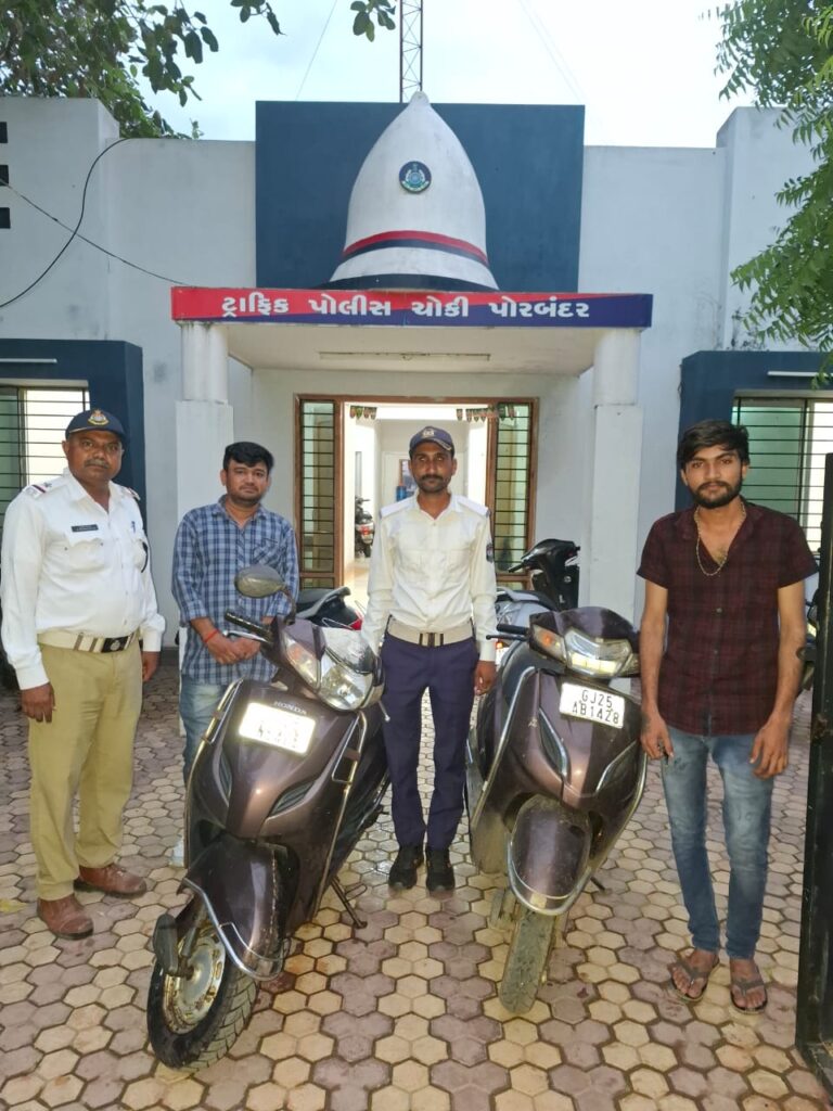 ગઈ તા. ૧૦/૦૯/૨૦૨૫ સાંજના સમયે ટ્રાફીક પી એસ આઈ કે. બી ચૌહાણ તથા સ્ટાફ ટ્રાફિક પોલીસ ઓફિસે હાજર હતા તે દરમ્યાન કુંભારવાડા પોરબંદર માં રહેતા હેતલબેન મોઢા અને તેમના પતિ સાગરભાઈ ભોગાયતા ટ્રાફિક પોલીસ સ્ટેશને આવેલ અને જણાવેલ કે અમારું એકટીવા મોપેડ નં.Gj-25N- 5405 બ્રાઉન કલર નું જે ભાવસિંહજી હોસ્પિટલ પોરબંદર ના પાર્કિંગમાં પાર્ક કરેલ હતું અને તે પાછા લેવા જતા ત્યાં જોવામાં આવેલ નહીં અને અમારૂ એકટીવા મોપેડ જે જગ્યાએ હતુ.તેની બાજુમાં અમારા બ્રાઉન કલરના એકટીવા જેવુ જ બીજું એકટીવા નં.GJ-25AB-1428 જોવામાં આવેલ જેથી અમારા એકટીવાની ચાવીથી ઉપરોક્ત એકટીવા ચાલુ થઈ જતાં ત્યાં પડેલું એક્ટિવા મોપેડ અહીં ટ્રાફિક ઓફિસે અમો લઈને આવેલ છીએ તેમ જણાવતા વાહન નંબર ઉપરથી GJ25-AB-1428 ના મોબાઈલ એપ થી માલિક હર્ષિતભાઈ કારીયા રહે.છાયા પોરબંદર વાળાના મોબાઈલ નંબર શોધી સંપર્ક સાધી ટ્રાફિક ઓફિસે બોલાવી હર્ષિત ભાઈને પૂછતાં પોતાનું એકટીવા સર્વિસ કરવા આપેલ હતું અને તે ભાઈ હોસ્પિટલે દવા લેવા માટે ગયેલ હતા, અને ઉતાવળમાં બંન્ને એકટીવા બાજુ બાજુમાં પાર્ક થયેલા હોય એક જ કલરના હોય અને તેના એકટીવાની ચાવીથી આ સાગરભાઈનુ એકટીવા ચાલુ થઈ જતાં એકટીવા સર્વિસ સ્ટેશને ભૂલથી લઈને જતા રહેલનુ જણાવેલ. પુછપરછ કરતા આ બનાવ ભૂલથી બનેલાનું જણાય આવેલ. જેથી એક બીજાના વાહનો હોવાની ખાત્રી કરી બંન્ને પાર્ટીને વાહન સોંપવામાં આવેલ હતા.