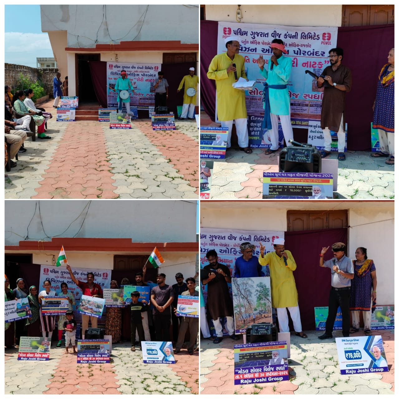 પશ્ચિમ ગુજરાત વીજ કંપની લિમિટેડ (PGVCL) વર્તુળ કચેરી પોરબંદર દ્વારા ‘મોડેલ સોલાર વિલેજ’ સ્પર્ધા અંગે માહિતગાર કરવા માટે ઓડદર ગામે શેરી નાટક દ્વારા લોકજાગૃતિ ફેલાવવામાં આવી હતી. ભારત સરકારના નવી અને નવીનીકરણીય ઊર્જા મંત્રાલયની ‘પીએમ સૂર્યઘર યોજના’ અંતર્ગત શરૂ કરાયેલી આ સ્પર્ધામાં નિયત વસ્તી ધરાવતા ગામોમાં સોલાર રૂફટોપ સ્થાપનાને પ્રોત્સાહન આપવામાં આવશે. દરેક જિલ્લામાં સૌથી વધુ સોલાર ક્ષમતા ધરાવતા ગામને ‘મોડેલ સોલાર વિલેજ’ જાહેર કરવામાં આવશે અને તેમને ₹1 કરોડની સબસિડી આપવામાં આવશે.