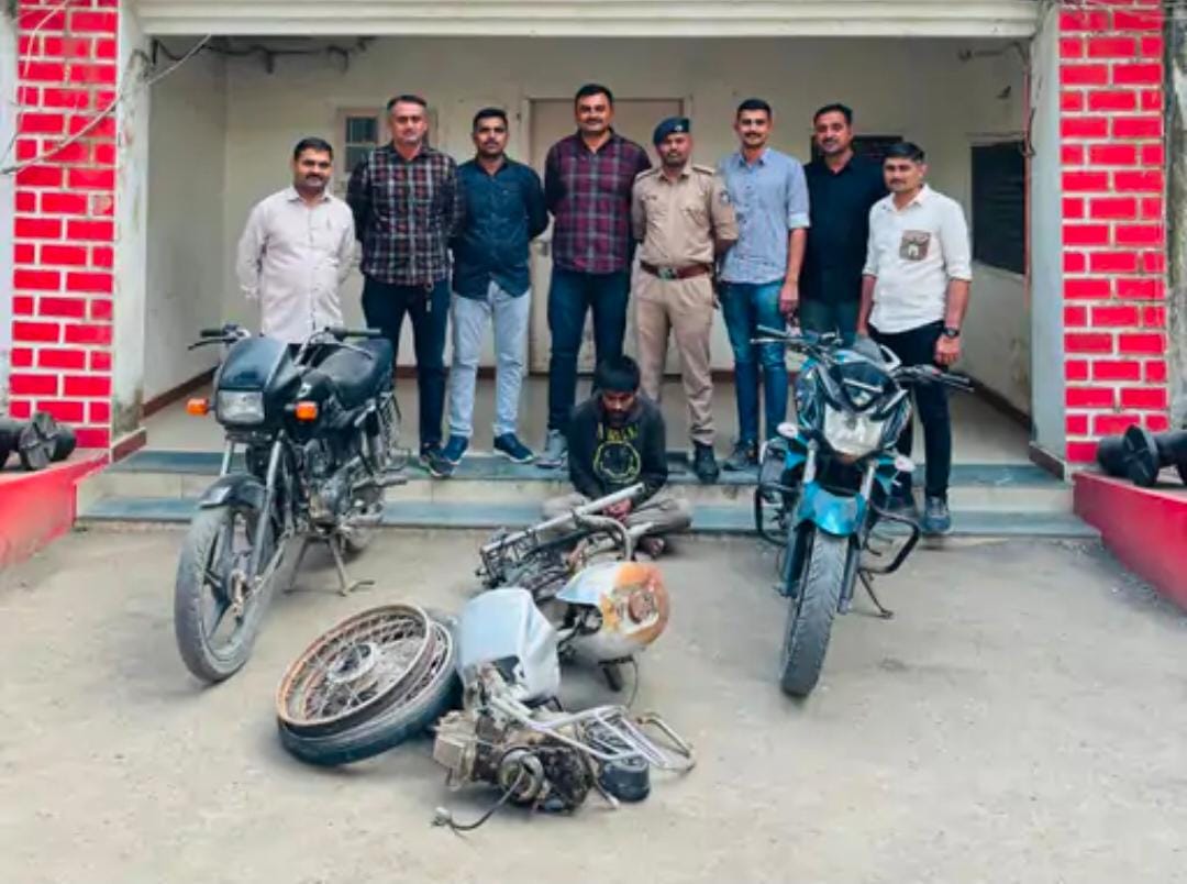 જેતપુર સિટી પોલીસે ત્રણ મોટરસાયકલ ચોરીનો ભેદ ઉકેલી એક રીઢા તસ્કરને ઝડપી પાડયો છે. પોલીસે ચોરી થયેલા ત્રણ મોટરસાયકલ સહિત કુલ ₹1.40 લાખનો મુદ્દામાલ જપ્ત કર્યો છે.