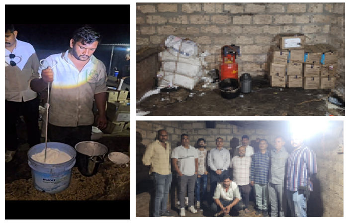 ગીર સોમનાથ એસ.ઓ.જી. તથા એલ.સી.બી.ની ટીમે બાતમીના આધારે ગીર સોમનાથ ફુડ સેફટી ઓફિસરને સાથે રાખી તાલાલા તાલુકાના ગુંદરણ ગામના પ્રેમનગર નેસમાં રહેતા રવિ કાળાભાઈ કરમટા (ઉ.વ.ર૪)ના રહેણાકના વાડામાં દરોડો પાડયો હતો અને નકલી દુધ બનાવવાના કાળા કૌભાંડનો પર્દાફાશ કર્યો હતો.પોલીસ તપાસમાં બહાર આવ્યું હતું કે આરોપી પામ ઓઈલ, યુરિયા જેવા જોખમી કેમિકલ્સ મિકસ કરી નકલી દુધ બનાવતો હતો. પોલીસે સ્થળ પરથી ૩૧ર૦ લીટર નકલી દુધ, ર૬૦ કિલો પામતેલ, દુધ બનાવવાનો ૧૦પ કિલો પાઉડર, ૧૬ કિલો મીલ્ક પાઉડર, ૭૮ મોટા ખાલી કેન મળી ૪.૬૯ લાખનો મુદ્દામાલ કબજે કર્યો હતો.