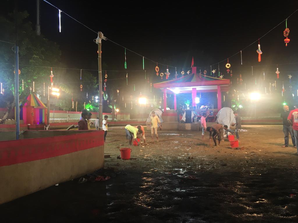 રવિવારની રાત્રે ધોધમાર વરસાદ વરસ્યા બાદ ગઈકાલે દિવસના ઉઘાડ રહ્યો પરંતુ, રાત્રિના ઝરમર વરસાદ વરસતા ખેલૈયા,દર્શકો ભીંજાયા હતા. આજે સાંજે સાર્વત્રિક ઝરમર વરસાદ બાદ રાત્રિના રાસ-ગરબા શરુ થવાના સમયે જ ધીમી ધારે વરસાદ શરુ થયો હતો. જ્ના પગલે કેટલાક અર્વાચીન રાસના મેદાનોમાં પાણી ભરાયા હતા. જ્યાં દાંડિયારાસ રમવા માટે નાણાં વસુલાય છે તેવા અર્વાચીન રાસમાં થોભો અને રાહ જુઓની નીતિ જોવા મળી હતી તો પ્રાચીન ગરબીઓના સ્થળે માતાજીની આરતી કરીને તાલપત્રી ઢાંકી દેવાઈ હતી.