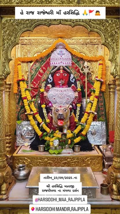 આસ્થા અને શ્રદ્ધાને કારણે જ દેવો પૂજનીય કહેવાય છે.અને તેથી જ શ્રદ્ધા સાથે તેમના સ્થાનક બનાવી પૂજન-અર્ચન કરાય છે.નર્મદા જિલ્લાનું મુખ્ય મથક રાજપીપલા એ રિયસતી રાજવી નગરી ગણાય છે..આઝાદી પહેલા આ શહેર નાંદોદ તરીકે ઓળખાતું હતું.અને અહીં ગોહેલ વંશજો રાજ કરતા હતા. લોક વાયકા પ્રમાણે જેના નામથી વિક્રમ સંવત કહેવાય છે તે રાજા વિક્રમાદિત્યના વંશજોએ રાજપીપલામા રાજ્ય કર્યું હતું.અને તેમના જ વંશજ રાજા વેરીસાલજી મહારાજ ઉજ્જૈન ની સાથે સાથે રાજપીપલાના પણ ગાદી વારસ હોવાથી ઉજ્જૈન નિવાસીમાં હરસિદ્ધિને સાક્ષાત તેમની સાથે રાજપીપલા આવ્યા હોવાની દંત કથાપ્રચલિત છે.અને 425 વર્ષ પુરાણી આ પ્રાચિન મન્દિરનો આ ઇતિહાસ છે. આજે પણ સાક્ષાત માં હરસિદ્ધિ ઉજ્જૈન અને રાજપીપલામાં બિરાજે છે,આસો માસમાં હરસિદ્ધિ રાજપીપલા પધાર્યા હતા એવી લોકવાયકા છે