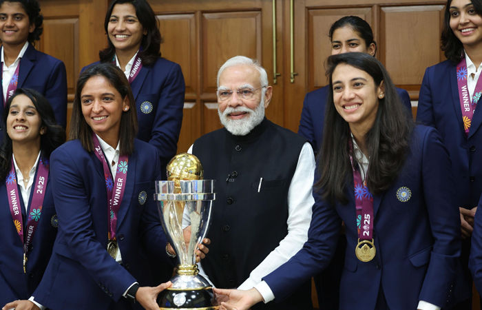આઈસીસી વિમેન્સ વર્લ્ડ કપ 2025માં વિજેતા રહેલી ટીમ ઈન્ડિયાના ખેલાડીઓ વડાપ્રધાન નરેન્દ્ર મોદીની મુલાકાત લેવા તેમના નિવાસ સ્થાને પહોંચી હતી. વડાપ્રધાને ભારતીય ક્રિકેટની મહિલા ટીમનું સન્માન કર્યું. આજે વડાપ્રધાનના નિવાસ સ્થાને મુલાકાત બાદ મોટાભાગના ખેલાડીઓ પોતાના વતન જવા રવાના થશે. જણાવી દઈએ કે, ગત રવિવારે ભારતીય મહિલા ટીમે સાઉથ આફ્રિકાને 52 રને હરાવીને પહેલીવાર મહિલા વર્લ્ડ કપ ખિતાબ પોતાના નામે કર્યો હતો.