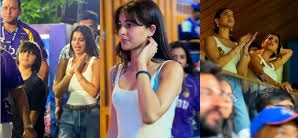 ગઈકાલે વાનખેડે સ્ટેડિયમમાં મુંબઈ ઈન્ડિયન્સ અને KKR વચ્ચે મેચ યોજાઈ હતી. આ દરમિયાન સુહાના ખાન પોતાની ટીમને સપોર્ટ કરવા માટે પોતાની ફ્રેન્ડ્સ અનન્યા અને શનાયા તથા નાના ભાઈ સાથે સ્ટેડિયમમાં જોવા મળી હતી.