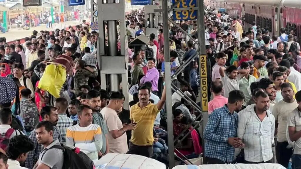 આગામી સમયમાં દિવાળીનો તહેવાર, છઠ્ઠ પૂજા અને બિહારની ચૂંટણીને લઈને સુરતના રેલ્વે સ્ટેશન પર મુસાફરોની ભારે ભીડ જોવા મળી રહી છે. ઉત્તર ભારતના રાજ્યો ખાસ કરીને ઉત્તર પ્રદેશ અને બિહાર તરફ પોતાના વતન જવા માટે નીકળેલા હજારો પ્રવાસીઓના ધસારાથી પ્લેટફોર્મ પર પગ મૂકવાની પણ જગ્યા ન હોય એવી સ્થિતિ સર્જાઈ છે.સુરત શહેર હીરા નગરી અને ટેક્સટાઈલ નગરી તરીકે જાણીતું શહેર છે, જ્યાં મોટી સંખ્યામાં પરપ્રાંતીય લોકો કામ અર્થે વસવાટ કરે છે.