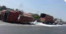 SURAT : NH-48 પર ટાયર ફાટતા ટેમ્પો પલટ્યો, કામરેજના વાવ ગામ પાસે સર્જાયો અકસ્માત