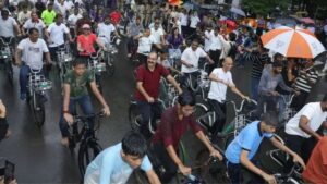 સાંસદ મુકેશભાઈ દલાલ, મેયર દક્ષેશભાઈ માવાણી વિશેષ ઉપસ્થિત રહ્યા હતા.’સ્વસ્થ ગુજરાત, મેદસ્વિતામુક્ત-ગુજરાત’ ના સંદેશ સાથે સુરતીઓએ વહેલી સવારે ભરવરસાદમાં પોલીસ પરેડ ગ્રાઉન્ડથી ‘Y’ જંક્શન થઈ પરત પોલીસ પરેડ ગ્રાઉન્ડ સુધીની 13 કિલોમીટર સાયક્લોથોનમાં ૧૫૦૦થી વધુ સાયક્લિસ્ટોએ ‘ફિટ ઈન્ડિયા’નો સંદેશો પાઠવ્યો હતો. સાયક્લોથોનમાં નાગરિકોએ, યુવાનો અને અધિકારીઓએ દૈનિક જીવનમાં કસરતને અપનાવવાની પ્રતિબદ્ધતા વ્યક્ત કરી હતી.જિલ્લા ક્લેક્ટર ડો.સૌરભ પારધી, મ્યુ કમિશનર શાલિની અગ્રવાલ અને પોલીસ કમિશનર અનુપમસિંહ ગહલૌત સહિત પોલીસ અધિકારીએ સાયકલ ચલાવી સ્વસ્થ જીવનશૈલી માટે સાયકલનો નિયમિત ઉપયોગ કરવાની પ્રેરણા આપી હતી.