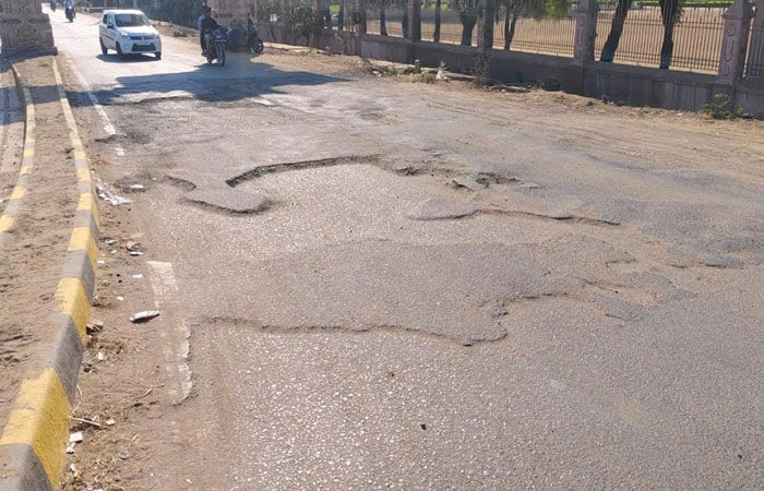 સ્થાનિકોના જણાવ્યા અનુસાર, આ રોડનું નિર્માણ હજુ થોડા સમય પહેલા જ કરવામાં આવ્યું હતું, છતાં ટૂંકા ગાળામાં રોડની હાલત દયનીય બની ગઈ છે.ખાસ કરીને ટુ-વ્હીલર ચાલકો માટે આ ખાડાઓ જીવલેણ સાબિત થઈ શકે તેમ છે, જેના કારણે અકસ્માતનો ભય સતત તોળાઈ રહ્યો છે. આ ગંભીર મુદ્દે તંત્રને વારંવાર રજૂઆતો કરવા છતાં, જવાબદાર વિભાગો એકબીજા પર દોષારોપણ કરીને કામગીરી ટાળી રહ્યા છે. શહેરની છબી ખરડતા આ પ્રવેશ માર્ગનું તાત્કાલિક સમારકામ કરવામાં આવે તેવી લોકમાંગ ઉઠી છે. જો વહેલી તકે ખાડા પૂરવામાં નહીં આવે તો મોટા અકસ્માતની ભીતિ સેવાઈ રહી છે.