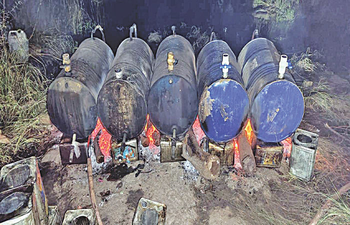 મુળી તાલુકાના ભવાનીગઢ ગામની સીમમાં દેશી દારૂની ભઠ્ઠી ચાલી રહી હોવાની બાતમીના આધારે સુરેન્દ્રનગર એલસીબી પોલીસે દરોડો પાડયો હતો. દરોડા દરમિયાન દારૂ ગાળવાનું કામ ચાલી રહ્યું હતું. એલસીબીએ સ્થળ પરથી ૩૦૦ લીટર દેશી દારૂ (કિં.રૂ.૬૦,૦૦૦), ૩૫૦૦ લીટર આથો (કિં.રૂ.૮૭,૫૦૦), પતરાના બાફણીયા, નળી સહિત ફૂલ રૂ.૧,૪૮,૫૦૦નો મુદામાલ કબજે કર્યોે હતો. રેઇડ દરમિયાન દેશી દારૂની ભઠ્ઠી ચલાવનાર બુટલેગર નવલભાઈ રણછોડભાઈ દેકાવાડિયા (રહે.ભવાનીગઢ) હાજર મળી ન આવતા મુળી પોલીસ મથકે પ્રોહીબીશન એક્ટ હેઠળ ગુનો નોંધી કાર્યવાહી હાથ ધરી છે. સ્થાનિક પોલીસને ગ્રામજનો અને આગેવાનો દ્વારા આ મામલે અનેક વખત રજૂઆતો કરવા છતાં કોઈ જ કાર્યવાહી કરવામાં આવી નહોતી અને અંતે એલસીબી પોલીસે રેઇડ કરતા સ્થાનિક પોલીસની કામગીરી સામે પણ અનેક સવાલો ઉભા થયાં છે.