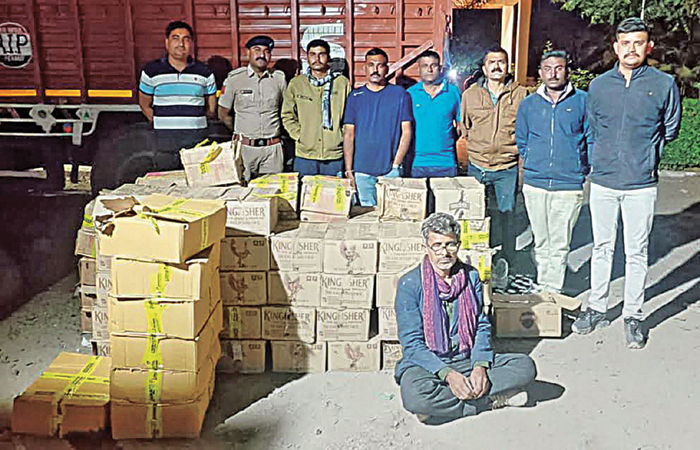 રમિયાન બાતમીવાળી આઇશર ગાડી (આરજે-૧૬-જીએ-૫૨૪૪) આવતા રોકી તપાસ કરતા ગાડીના પાછળના ભાગે બટાકાના કોથળા નીચેના ભાગમાં લોખંડની પ્લેટો લગાવી અલગ અલગ ખાનામાં સંતાડેલ વિદેશી દારૂ અને બિયરની નાની મોટી ૧,૪૫૫ બોટલ (કિં.રૂ.૬,૫૦, ૯૮૦) મળી આવી હતી.પોલીસે દારૂ, આઇશર ગાડી (કિં.રૂ.૧૦ લાખ) મોબાઈલ (કિં.રૂ.૫,૦૦૦) બટાકાની (કિં.રૂ.૧૮૦૦૦) મળી કુલ રૂ.૧૬,૭૩,૯૮૦ના મુદ્દા માલ કબજે કરી આઇસર ચાલક જસારામ જગમાલરામ ચૌધરી જાટ (રહે.ઝડપા ગામ, તા.સેડવા,જિ.બાડમેર, રાજસ્થાન)ની અટકાયત કરી હતી. હાલ પોલીસે દારૂનો જથ્થો ક્યાંથી લાવવામાં આવ્યો હતો અને ક્યાં લઈ જવાનો હતો તે અંગે પૂછપરછ હાથ ધરી છે.