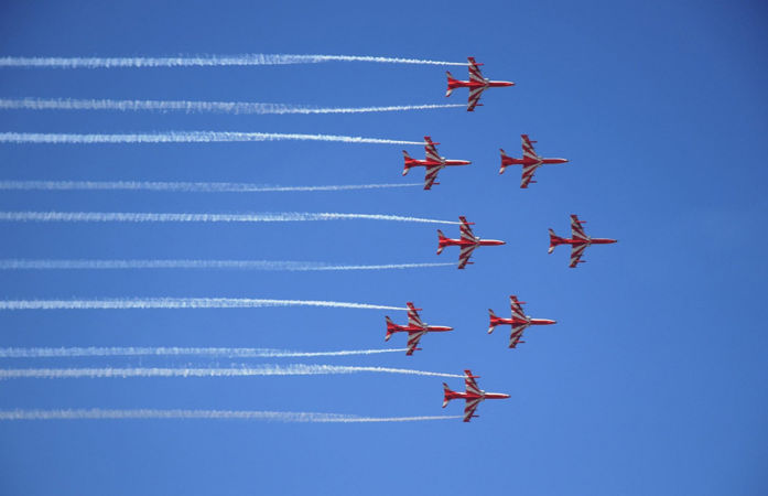 ભારતમાં બનાવેલા નવ હોક Mk132 વિમાનો ઉડાડતા, પાયલટ્સ વિમાનો વચ્ચે 5 મીટરથી ઓછા અંતરે રમી શકે તેવા સ્ટંટ કરે છે. આગામી શૉમાં લૂપ્સ, રોલ્સ, હેડ-ઓન ક્રોસ, બઝ અને ઇન્વર્ટેડ ફોર્મેશન જેવા આકર્ષક દિલધડક કરતબ દર્શાવવામાં આવશે. આ વર્ષની શરૂઆતમાં SKATએ જાન્યુઆરી અને ફેબ્રુઆરી દરમિયાન વડોદરા, જામનગર, નલિયા અને ભુજમાં એર શૉ દ્વારા દર્શકોને મંત્રમુગ્ધ કરી દીધા હતા.