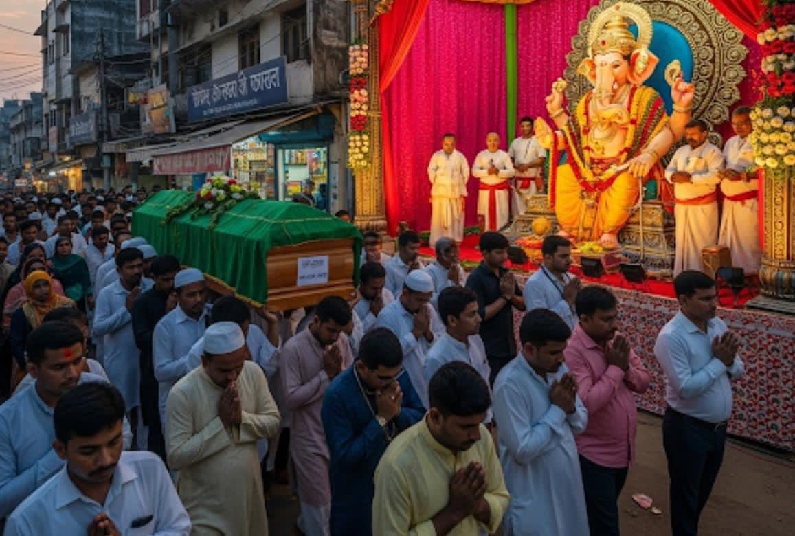 જ્યારે સમગ્ર દેશમાં કોમી વૈમનસ્ય ફેલાવવાનો પ્રયાસ થઈ રહ્યો છે, ત્યારે ભરૂચ જિલ્લાના વાગરા નગરે ધાર્મિક સૌહાર્દ અને ભાઈચારાનું એક ઉત્કૃષ્ટ ઉદાહરણ પૂરું પાડ્યું છે. ગણેશોત્સવના પવિત્ર તહેવાર દરમિયાન, હિન્દુ ભાઈઓએ એક મુસ્લિમ મહિલાના અંતિમ સંસ્કાર યાત્રા (જનાજા) ને સન્માન આપવા માટે ગણેશ પંડાલના માઇક અને સંગીત બંધ રાખીને સાચી માનવતાનો પરિચય આપ્યો છે.