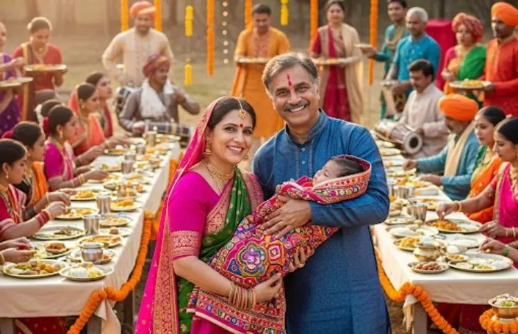 હરિયાણાના જીંદ જિલ્લામાં એક દંપતીને લગ્નના 19 વર્ષ પછી દીકરીનો જન્મ થતાં ખુશીનો પાર નહોતો. પરિવારમાં દીકરીનો જન્મ થતા આજુબાજુના 21 ગામડામાં જમણવાર રાખ્યો અને 8000 લોકો આ કાર્યક્રમમાં જોડાયા હતા. આ જમણવારમાં જાતજાતના પકવાર પીરસવામાં આવ્યા હતા. બાળકીના મામાએ પણ દિલ ખોલીને રૂપિયા વાપર્યા હતા.