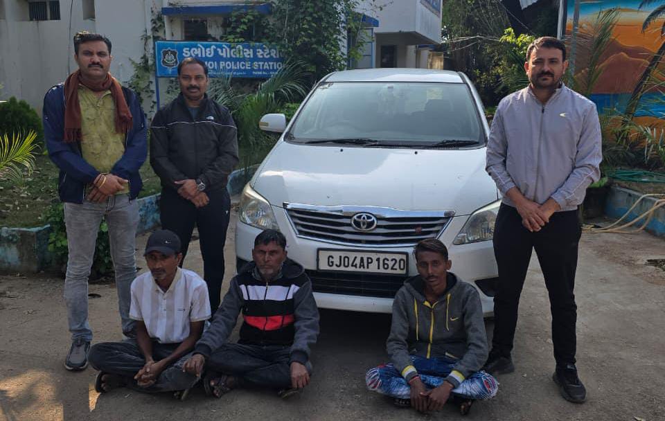 VADODARA : ડભોઇ તાલુકાના પણસોલી પાસે કારમાં રૂા.૪.૧૬ લાખના દારૂ સાથે ૩ ઝડપાયા