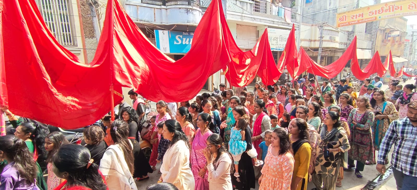 શોભાયાત્રામાં “બોલ મારી અંબે જય જય અંબે” નો ગુંજારવ સાથે રાસ ગરબા અને ભક્તિ ધુનો ની રમઝટ માં સૌ કોઈ ભક્તિ ભાવપૂર્વક ઝૂમતા નજરે પડ્યા હતા