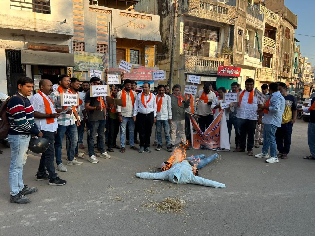 ભારતના પાડોશી બાંગ્લાદેશમાં હિન્દુ સમાજ પર થઈ રહેલા અત્યાચાર અનેવિરોધમાં હુમલાઓના દેશભરમાં ઉગ્ર પ્રદર્શન થઈ રહ્યા છે. આ રાષ્ટ્રીય આંદોલનના ભાગરૂપે આંતરરાષ્ટ્રીય હિન્દુ પરિષદ અને રાષ્ટ્રીય બજરંગ દળ ડભોઈ, વિશ્વ હિન્દુ પરિષદ અને ડભોઈ નગર હિન્દુ આગેવાનો દ્વારા વડોદરી ભાગોળ પાસે બાંગ્લાદેશના વડાપ્રધાનનું પૂતળું દહન કરી વિરોધ નોંધાવવામાં આવ્યો હતો. “બાંગ્લાદેશ સરકાર હિન્દુઓની સુરક્ષા કરે”, “હિન્દુઓ પરના અત્યાચાર બંધ કરો” જેવા જોરદાર સૂત્રોચ્ચારથી સમગ્ર વિસ્તાર ગુંજી ઉઠ્યો હતો. બાંગ્લાદેશમાં હિન્દુઓ પર હિંસા, અત્યાચાર, હત્યા જેવી ઘટનાઓ