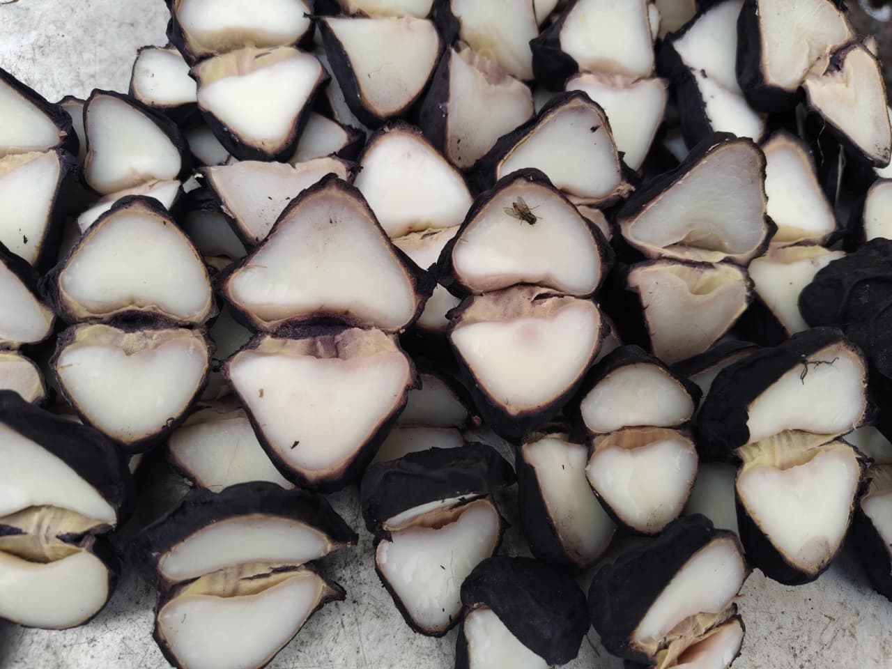 માસ આવતાં જ્ઞાતિનાં લોકો એ પાણી માથી બહાર કાઢી, તેમને હીરાકણી પાણી માં રાખી. ફળ ઉપરની સખત છાલને કાળા કોલસા જેવી રંગી નાખે છે. તે પછી તે ફળને ગરમ પાણીમાં બાફી લઈ, ખાવા લાયક કરાય છે. ત્રિકોણ આકારનાં ફળને બે બાજુ સૂડિથી થોડું થોડું કાપીને તેને દેખાવે સારા સુંદર કરી બજારમાં વેચાય છે. આર્વા ફળ હોસે હોસે ખવાય છે