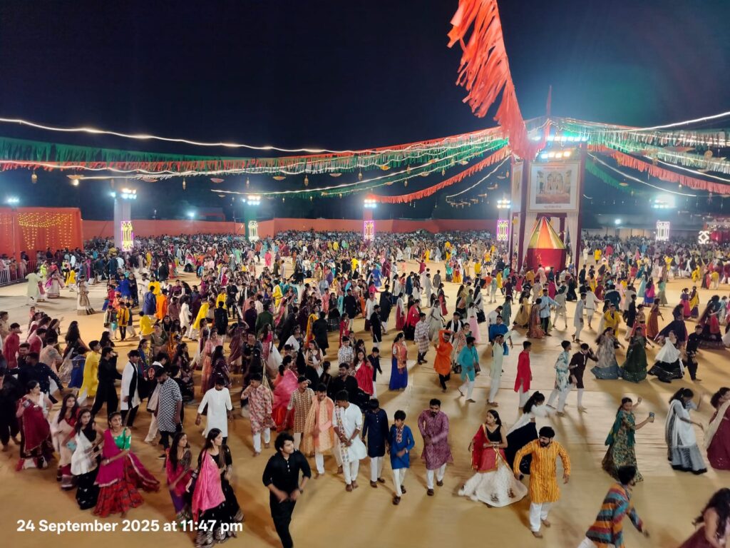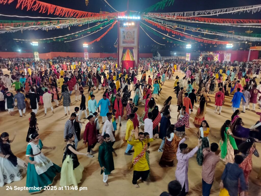 ડભોઈ નગરીમાં નવરાત્રી મહોત્સવનો પ્રારંભ થઈ ચૂક્યો છે અને ત્રીજા દિવસે જ સમગ્ર નગરમાં ગરબાનો માહોલ પૂરજોશમાં જામ્યો છે. શહેરના એપીએમસી મેદાન ખાતે માં ગઢ ભવાની દ્વારા આયોજિત ‘દર્ભાવતી કલ્ચરલ ગ્રુપ’ના ગરબા મહોત્સવમાં હજારોની સંખ્યામાં ખેલૈયાઓ અને દર્શકો ઉમટી પડ્યા હતા.