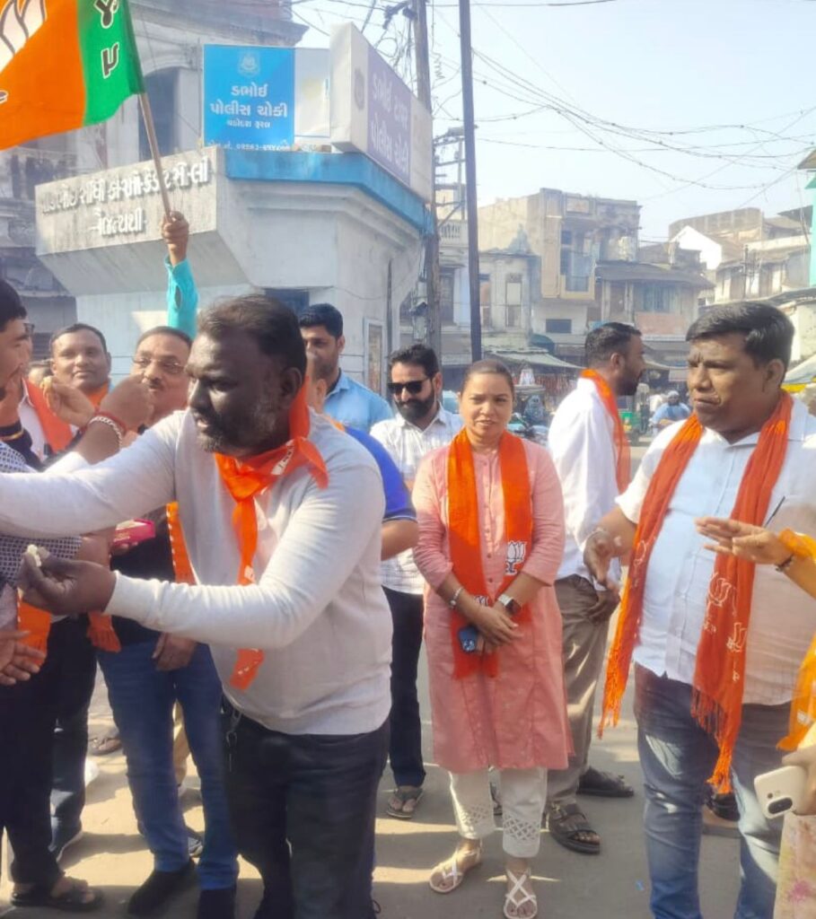 બિહાર માં પરિણામ બાદ ઠેર ઠેર ઉજવણીનો માહોલ જોવા મળ્યો હતો.ડભોઈ શહેર ભારતીય જનતા પાર્ટી સંગઠન દ્વારા બિહાર માં ઐતિહાસિક જીત બાદ ટાવર ચોક ખાતે ફટાકડા ફોડી કાર્યકરો નું મોઢું મીઠું કરાવી જીત ની ઉજવણી કરી હતી.વડોદરા જિલ્લા મહામંત્રી ડો બી. જે.બ્રહ્મભટ્ટે આ પ્રસંગે જણાવ્યું હતું કે દેશ ના વડાપ્રધાન નરેન્દ્રભાઈ મોદી તથા દેશ ના ગૃહમંત્રી તથા રાજનીતિ ના ચાણકય અમિતભાઇ શાહ ની કુનેહ થી બિહાર માં એન ડી એ ગઢબંધન પ્રચંડ બહુમત સાથે જીત મેળવી છે.જેની ઉજવણી ના ભાગરૂપે મોટી સંખ્યા માં કાર્યકરો ટાવર ચોક ખાતે ભેગા થઇ આતશબાજી કરી બિહાર જીત ની ઉજવણી કરી હતી.આ પ્રસંગે ડભોઇ પાલિકા પ્રમુખ બીરેન શાહ સાથે જિલ્લા મહામંત્રી ડો બી.જે.બ્રહ્મભટ, ડભોઇ શહેર મહિલા મોરચાના પ્રમુખ સોનલબેન કિશોરભાઈ સોલંકી કિરીટ વસાવા અમિતભાઈ ડો. સદીપ શાહ,તથા મહિલા મોરચા ના સોનલબેન કિશોરભાઈ સોલંકી ઉપસ્થિત રહી બિહાર જીત ની ઉજવણી કરી હતી.