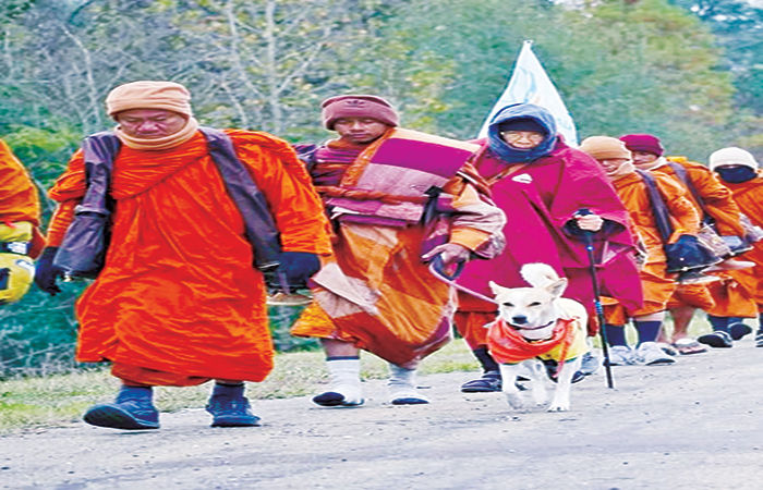 ભિખ્ખુ પન્નાકરાના નેતૃત્વમાં ૨૪ સાધુઓના સંઘે ટેક્સાસમાંથી પગપાળા શાંતિયાત્રા આરંભી હતી. નોર્થ કેરોલિયાના શાર્લોટ શહેરમાં પહોંચી ગયો છે. ટેક્સાસથી શાર્લોટ સુધીની યાત્રા ૮૨ દિવસમાં પૂરી થઈ છે. ઓક્ટોબર-૨૦૨૫માં તેમની યાત્રાનો પ્રારંભ થયો હતો. આ મહિનાના અંતે વૉશિંગ્ટનમાં તેમની યાત્રા પૂરી થશે. ૫૦ હજાર કિલોમીટરની આ પગપાળા યાત્રાના ભાગરૂપે  શાંતિ, પ્રેમ અને કરુણાનો સંદેશો આપતા આ સાધુઓને જોવા માટે શહેરોમાં ભીડ ઉમટી રહી છે. લોકો કહી રહ્યા છે કે આવી શાંતિયાત્રા જીવનમાં કદાચ ક્યારેક જ જોવા મળે છે. લોકો આ સાધુઓને આવકારી રહ્યા છે અને તેમની સાથે ચાલી પણ રહ્યા છે.બૌદ્ધ સાધુઓના સંઘનું નેતૃત્વ કરી રહેલા ભિખ્ખુ પન્નાકરાએ કહ્યું હતું કે અમારો મેસેજ ખૂબ સરળ છે. એ સંદેશો ધર્મને લગતો નથી. એ સંદેશો છે માનવતાને લગતો. આપણું જીવન વધારે સભાન બને તે માટે અમે મેસેજ આપી રહ્યા છીએ. અમે દેશવાસીઓને પ્રેમ, શાંતિ અને દયા દાખવવાની અપીલ કરી રહ્યા છીએ. તેમની આ યાત્રા ફેબુ્રઆરીમાં પૂરી થાય તેવી શક્યતા છે. આ શાંતિયાત્રા ૧૨૦ દિવસના આયોજન સાથે શરૂ થઈ હતી. દરરોજ આ બૌદ્ધ સાધુઓ ૪૦થી ૫૦ કિલોમીટરની પગપાળા યાત્રા કરી રહ્યા છે.