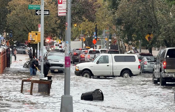 ન્યૂયોર્ક શહેરમાં મૂશળધાર વરસાદને કારણે અનેક વિસ્તારોમાં પાણી ભરાઇ ગયા હતાં. માત્ર ૧૦ મિનિટનાં વરસાદને કારણે શહેરનાં અનેક વિસ્તારો જળમગ્ન થઇ ગયા હતાં. બે અલગ અલગ બેઝમેન્ટ દુર્ઘટનાઓમાં બે લોકોનાં મોત થયા છે.