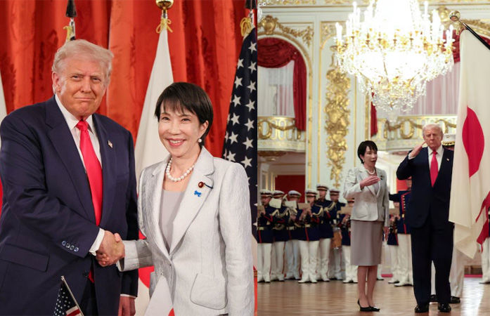 ટ્રમ્પ મંગળવારથી ત્રણ દિવસીય જાપાન મુલાકાતે છે. જાપાનના નવા વડાપ્રધાન સાને તાકાઈચીની હાજરીમાં ટોક્યોમાં ગાર્ડ ઑફ ઑનરની સાથે તેમનું સેરેમોનિયલ વેલકમ કરવામાં આવ્યું હતું. પરંતુ તેમને અંદાજ ન હતો કે, સેરેમોનિયલ વેલકમ દરમિયાન એક હેડ ઑફ સ્ટેટ કેવી રીતે વર્તે છે. જેના લીધે તેમની ચાલવાની ઢબ અને વર્તનની સોશિયલ મીડિયા પર હાંસી ઉડી રહી છે.
