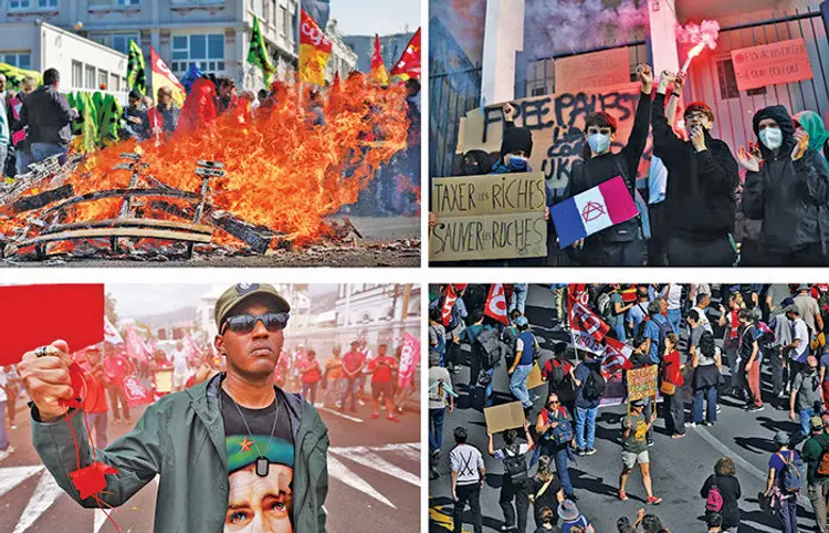 ફ્રાન્સમાં વડાપ્રધાનપદે સેબાસ્ટિયન લેકોર્નુની નિમણૂક પછી બજેટમાં કાપ, જાહેર સેવાઓ અને ભથ્થાં મુદ્દે સરકારના વિરોધમાં જનતામાં ઉકળતા ચરુ જેવી સ્થિતિ છે. ગયા સપ્તાહે ‘બ્લોક એવરીથિંગ’ બેનર હેઠળ વિરોધ પ્રદર્શન પછી ગુરુવારે ફરી એક વખત ફ્રાન્સમાં લાખો લોકો રસ્તા પર ઉતર્યા છે. ગૃહ મંત્રાલયે જણાવ્યું કે, પેરીસની બહાર ૨.૮૦ લાખથી વધુ લોકો દેખાવોમાં જોડાયા છે જ્યારે સમગ્ર દેશમાં ૮થી ૯ લાખ લોકો વિરોધ પ્રદર્શનમાં જોડાયા હોવાનું મનાય છે. પોલીસે પેરિસમાં ૨૧ સહિત ૧૪૧થી વધુ લોકોની ધરપકડ કરી છે અને ૭૫ લોકો હજુ પણ અટકાયતમાં છે. કાયદો-વ્યવસ્થા જાળવવા ૮૦,૦૦૦ પોલીસ કર્મચારી તૈનાત કરાયા છે.બજેટમાં કાપના વિરોધમાં વેપાર સંગઠનોએ ગુરુવારે હડતાળની જાહેરાત કરી હતી. આ સિવાય પગાર વધારા, ધનિકો પર ઊંચા ટેક્સ તથા પ્રમુખ ઈમેન્યુઅલ મૈંક્રોના રાજીનામાની માગણી સાથે સમગ્ર ફ્રાન્સમાં માર્સેલી, નાન્ટેસ, લીઓન, પેરિસ અને અન્ય શહેરોમાં ૮,૦૦,૦૦૦થી વધુ લોકોએ રસ્તા પર ઉતરી દેખાવો કર્યા હતા, જેમાં કેટલાક સ્થળો પર દેખાવો હિંસક બન્યા હોવાનું મીડિયા અહેવાલોમાં જણાવાયું છે.